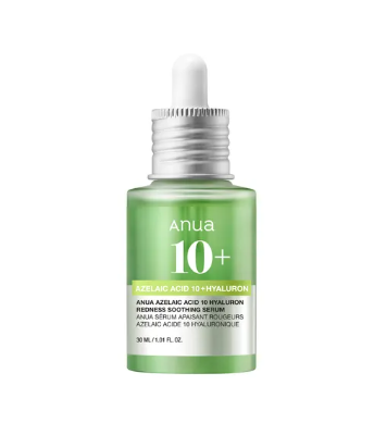 Anua- Suero calmante para el enrojecimiento con ácido azelaico 10% y ácido hialurónico, alivia el acné, la rosácea y la hiperpigmentación, mientras que el ácido hialurónico proporciona una hidratación duradera.