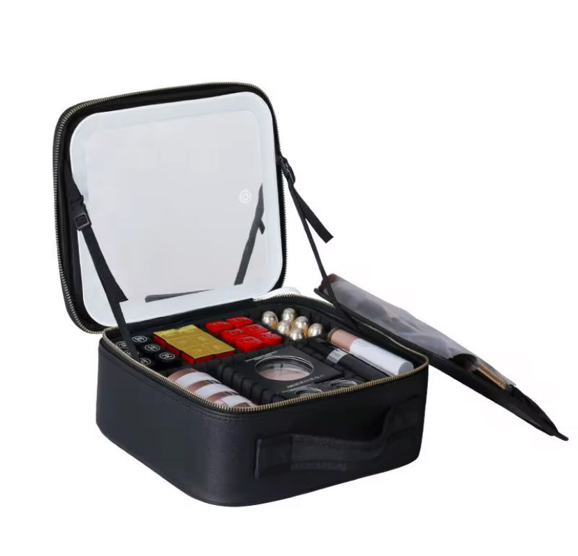 Cosmetiqueras con espejo de luz led, 3 luces y varia intensidad, cable para cargar, porta brochas y espejo con macro