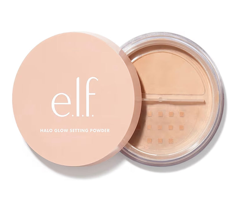 e.l.f. - Polvo de fijación Halo Glow, sedoso, no pesa, difuminado, alisa y minimiza los poros y las líneas finas, efecto desenfocado, medio, acabado semimate- Tono medium