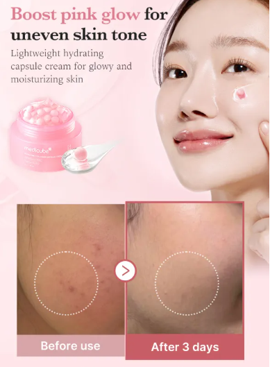 medicube- Crema de cápsulas con PDRN de salmón, colágeno y niacinamida, unifica el tono de la piel, reafirma la piel flácida y fortalece la barrera cutánea.